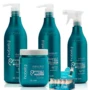 Linha reconstrutora de fios com proteínas do leite (whey protein) e aminoácidos (creatina, glicina e tirosina), que atuam na nutrição e hidratação profunda. O sérum selador de cutículas finaliza o processo revelando o espelhamento dos fios.